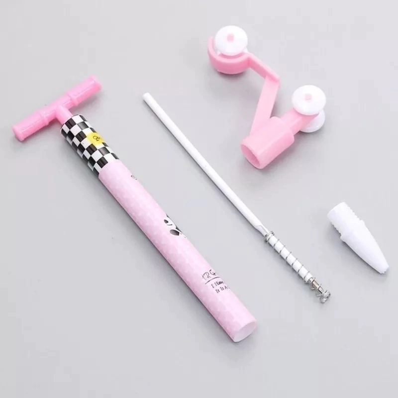É só apertar o apoio das mãos e a ponta aparece para escrever