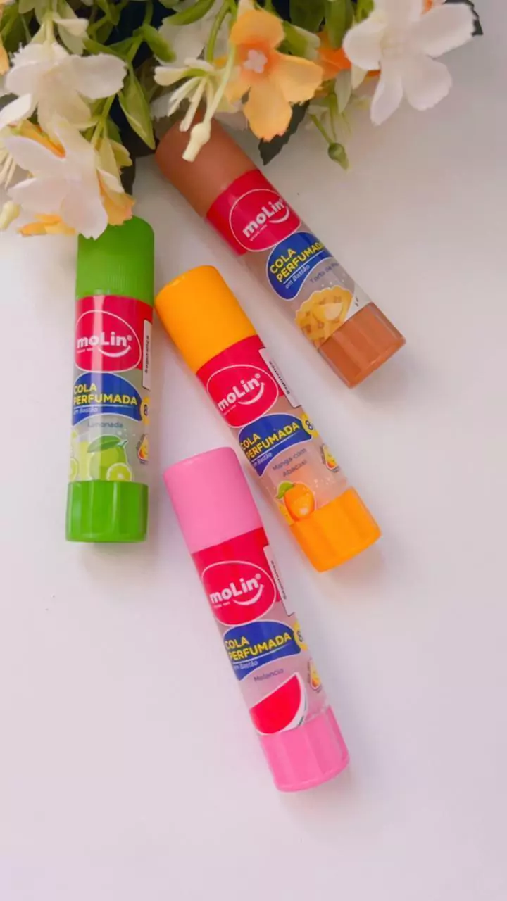 A cola em bastão perfumada transparente está pronta para perfumar seus cadernos e colagens!
