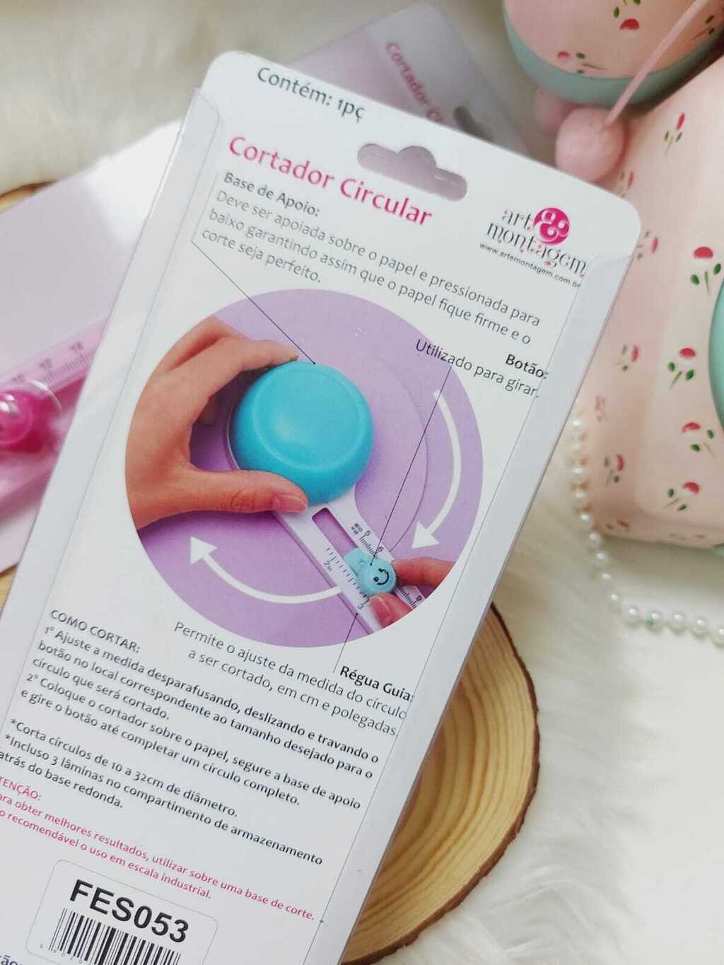 2º Coloque o cortador sobre o papel, segure a base de apoio e gire o botão até completar um círculo