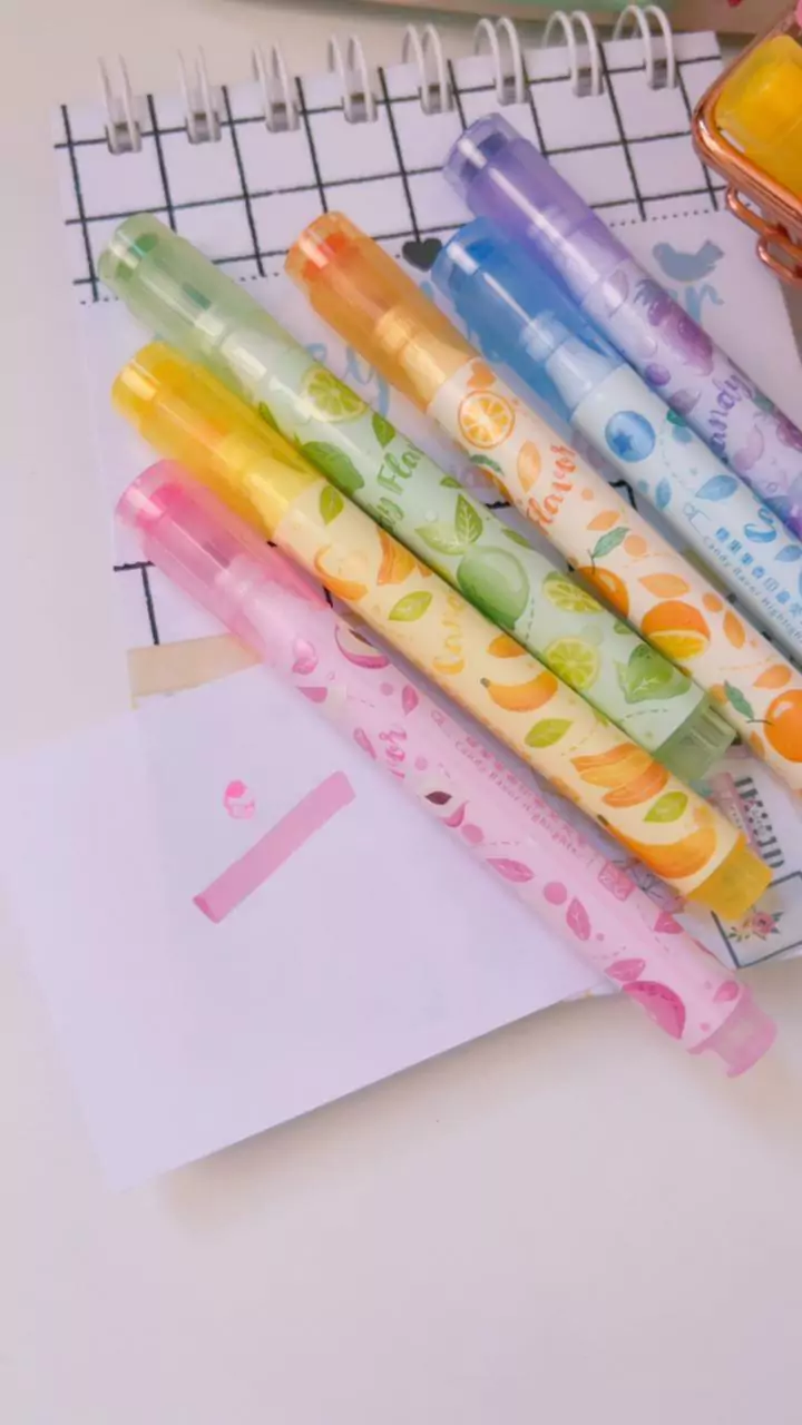 Ideal para destacar suas anotações com aroma de frutas! São perfeitos para dar um toque de alegria e frescor aos seus estudos. Com cores vibrantes e cheirinho delicioso, eles são não-tóxicos e super macios, garantindo uma experiência única ao escrever. Leve seu material escolar para outro nível com essa fofura que vai encantar você e seus amigos!