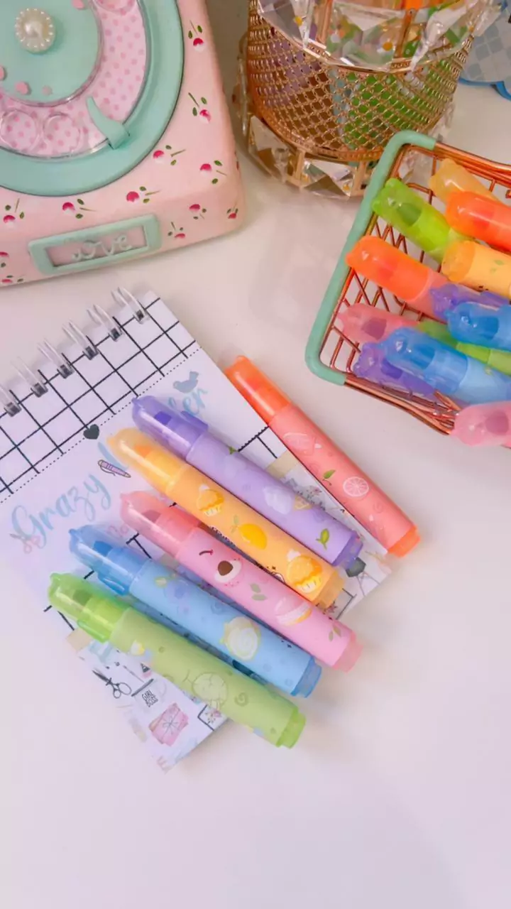 Ideal para destacar suas anotações com aroma de frutas! São perfeitos para dar um toque de alegria e frescor aos seus estudos. Com cores vibrantes e cheirinho delicioso, eles são não-tóxicos e super macios, garantindo uma experiência única ao escrever. Leve seu material escolar para outro nível com essa fofura que vai encantar você e seus amigos!