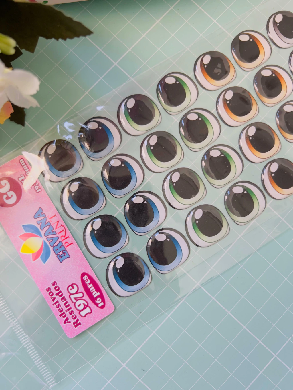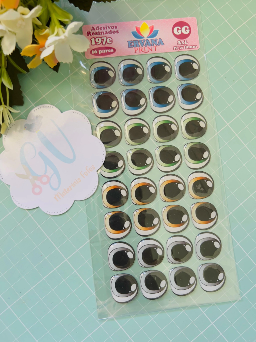 Olhos Adesivos em vinil adesivo recortado e Resinado
